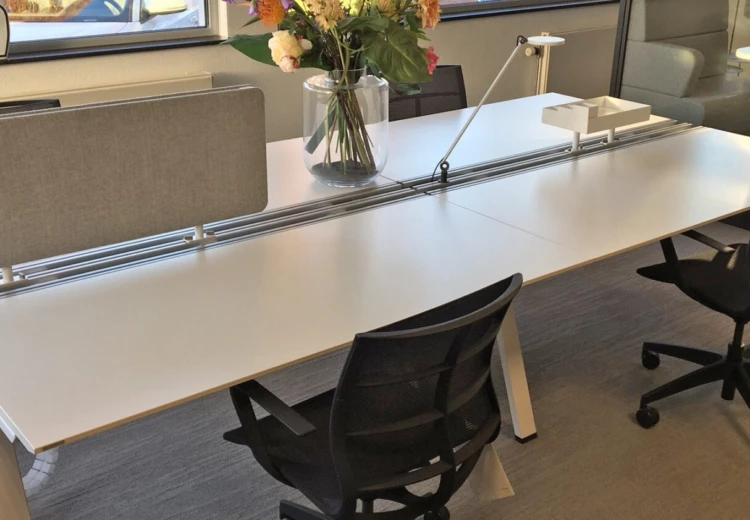 De Vario A-bech bestaat uit vier werkplekken. De workbench vormt een blok van 4 werkplekken. Ontdek de Vario A-bench. Op drievoudige A-poot. Bevat een accessoire rails in het midden, inclusief akoestische tussenwand, opbouwlamp en handige opzetbakjes. Nu afgeprijsd van € 4.030,- voor € 975,-.
