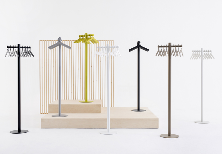 De Pole van Cascando is een robuuste, stalen kapstok die ruimte biedt aan acht tot tien jassen. Met de bijpassende kledinghanger vormt kapstok Pole een twee-eenheid.