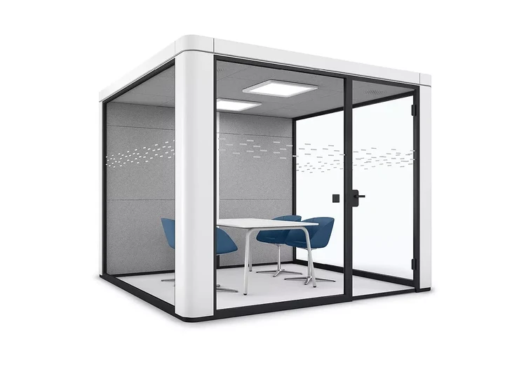 Vind meer producten in onze showroom Plan een adviesgesprek Informatie aanvragenHet doordachte ruimte-in-ruimte-systeem se:cube max breidt de se:cube-lijn uit en biedt grote plaatsen voor besprekingen, workshops en videoconferenties. De onafhankelijke se:cube max S kan ook worden gebruikt als eenpersoonskantoor in een open kantoorruimte.