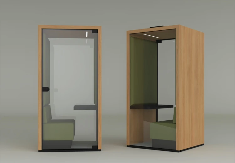 Naast de phonebooth en de workbooth is er ook een hybrid booth van Taiga Concept. De Taiga Concept Hybrid Booth is de compacte, geluidsdichte cabine op kantoor van 1m2 voor Teams gesprekken en videoconferenties.