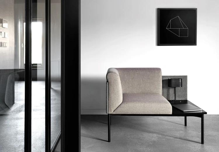 De Noti bank Sona is leverbaar van éénzitter tot ruime hoekopstelling. Met of zonder akoestische wanden.