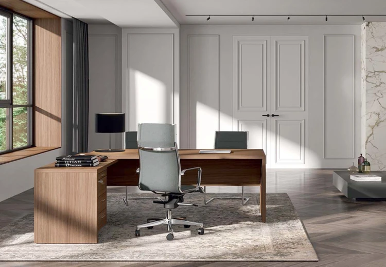 Het T45 directiebureau van Versluis kenmerkt zich door de extra dikte bladen en hoeken in verstek. Betaalbare luxe.