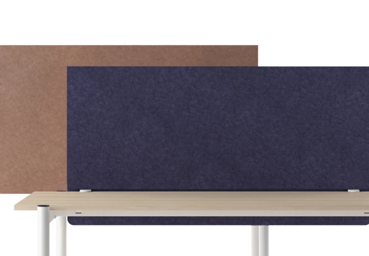 Niet-typische buiging van viltplaten verbergt de draagstructuur volledig, terwijl de verlengde rand de kabelgoot en draden afdekt. Zo ziet een werkplek er netjes en esthetisch uit.