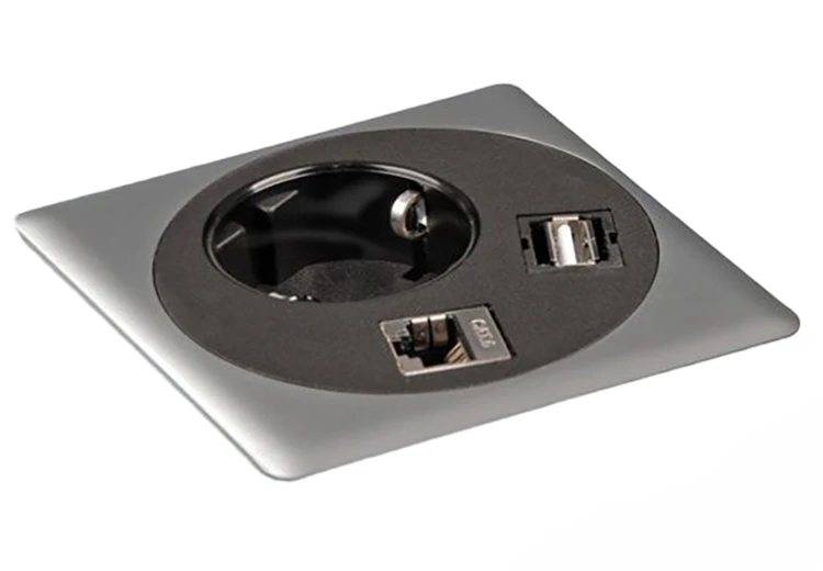 Vind meer producten in onze showroom Plan een adviesgesprek Informatie aanvragenDe Netbox Point is een innovatieve design elektrificatie-inbouwmodule voorzien van een wandcontactdoos (230v), 1xdata CAT6 (RJ45) en 1x USB. Inclusief 3m vast aansluitsnoer. De vierkante afdekplaat is leverbaar in mat chroom en RVS finish (op aanvraag glans chroom, zwart, nikkel). Afmeting afdekplaat 90x90mm, inbouwboring √ò80mm.Op aanvraag ook leverbaar met 1x HDMI (ipv RJ45 of USB).`