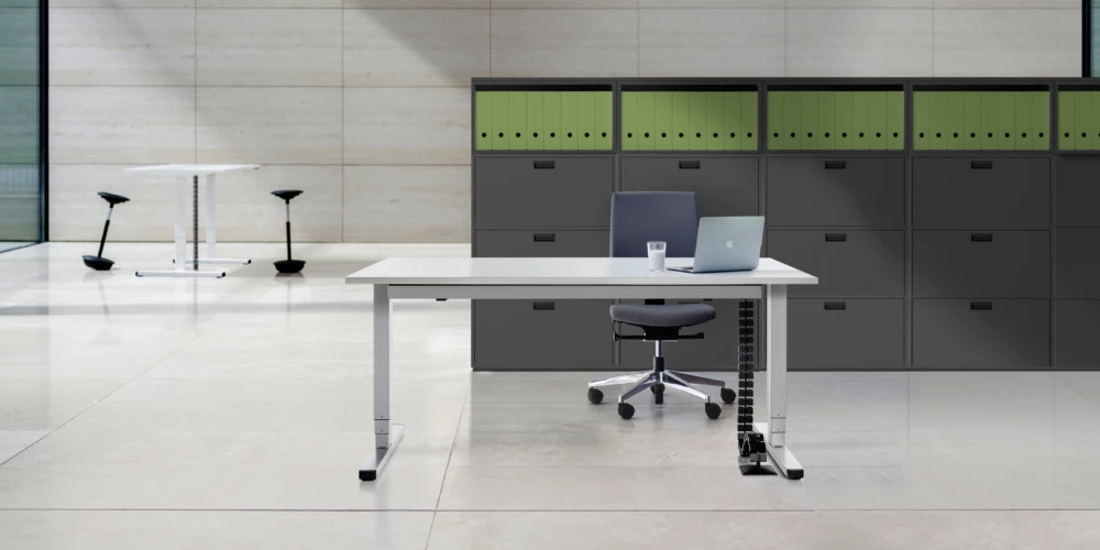 De zit-sta bureaus van Versluis Kantoorinrichters zijn ontworpen om aan te passen aan de behoeften van individuele gebruikers. Met een eenvoudig mechanisme kunnen werknemers moeiteloos de hoogte van hun bureau aanpassen, waardoor ze gemakkelijk kunnen afwisselen tussen zittend en staand werken. Dit bevordert een gezonde werkhouding en vermindert de negatieve effecten van langdurig zitten, zoals vermoeidheid en rugklachten.