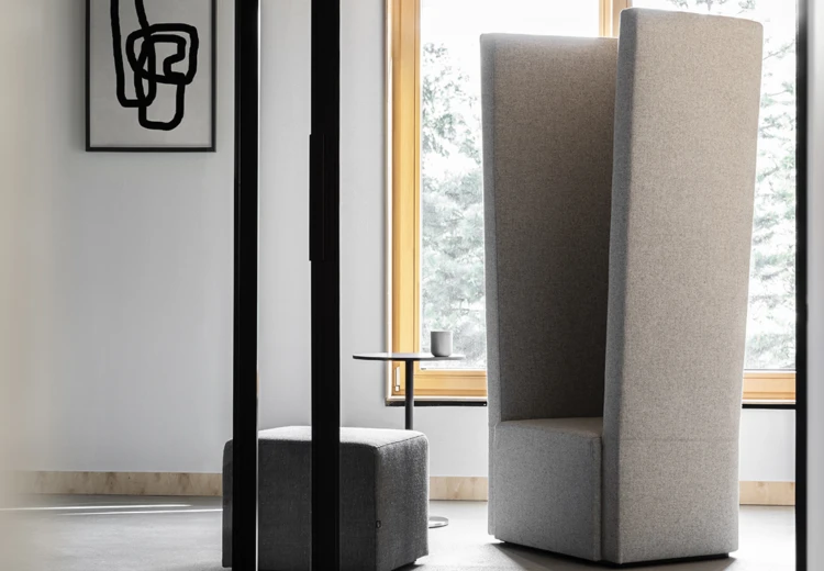 Vind meer producten in onze showroom Plan een adviesgesprek Informatie aanvragenAls een omgeslagen cape voelt deze belstoel Hussar. De hoge rug schermt de gebruiker van de belstoel voor 3/4 af. Hierdoor kunt u vol privacy bellen of even geconcentreerd werken. Spraak blijft grotendeels in de hoge rug van de belstoel hangen. Geluiden van buitenaf worden goed opgevangen. Belstoel Hussar is precies om die reden ontworpen, een plek om terug te trekken, en rust te vinden in de chaotische werkvloer van heden ten dagen. In de mobiele wereld van vandaag de dag is het soms moeilijk om te focussen. De open kantoorruimtes bieden weinig privacy, waardoor medewerkers weinig comfort vinden. Een vertrouwelijk gesprek of telefoontje is vaak lastig te voeren. Maar ook ontspanning en creativiteit wordt belemmerd door de open kantoorruimte van tegenwoordig.