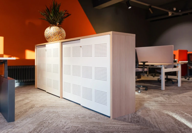 Heeft u last van omgevingsgeluid? Zoals collega's die in gesprek zijn, rinkelende telefoons, tikkende voetstappen. Dan biedt Vepa KS Store schuifdeurkasten een uitkomst. De achterwand kan worden geleverd met akoestisch paneel. Geluid wordt hiermee gedempt. De deuren kunnen geperforeerd worden uitgevoerd met een akoestische foam. Creëer eenvoudig stiltewerkplekken met de Vepa KS kasten.