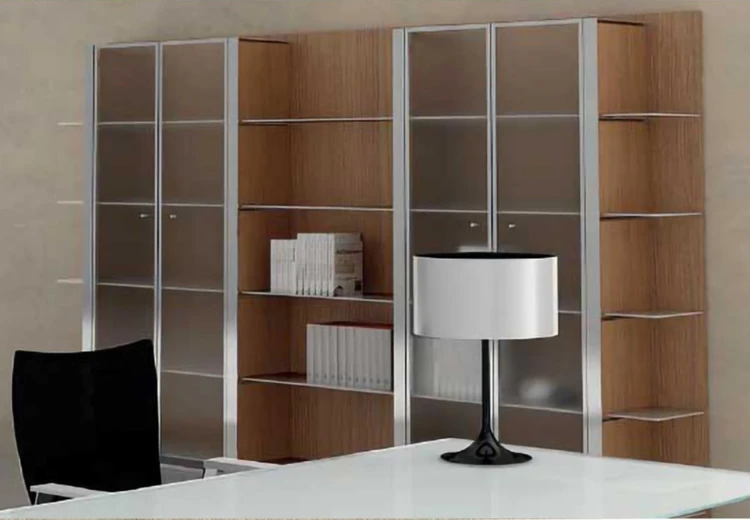 Vind meer producten in onze showroom Plan een adviesgesprek Informatie aanvragenBent u de saaie roldeurkasten, die u op ieder kantoor ziet, beu? Zoek u iets onderscheidends, een kantoorkast met souplesse. Dan is de Versluis Boiserie systeemkast iets voor u. De combinatie van een strak uiterlijk, de slanke metalen staanders in gepolijst aluminium, mat wit, shadow grey of glossy wit én de hoge kwaliteit houtdecoren maken deze kast uniek.