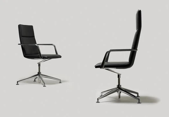 Niet alleen voor de vergaderruimte, maar ook op kantoor is de Fina soft de slanke oplossing die aan de hoogste eisen voldoet. De comfortabele conferentiestoel is verkrijgbaar als draaistoel met een onderstel van hoogwaardig gegoten aluminium, met drie verschillende onderstelopties: de twee versies met een verende stalen koppeling bieden een aangename, gedempte, driedimensionale schommelbeweging; deze modellen zijn verkrijgbaar met hoogteverstelling of automatisch terugstelmechanisme. En je vergadering zal bijzonder comfortabel zijn met de Fina soft met hoge rug.