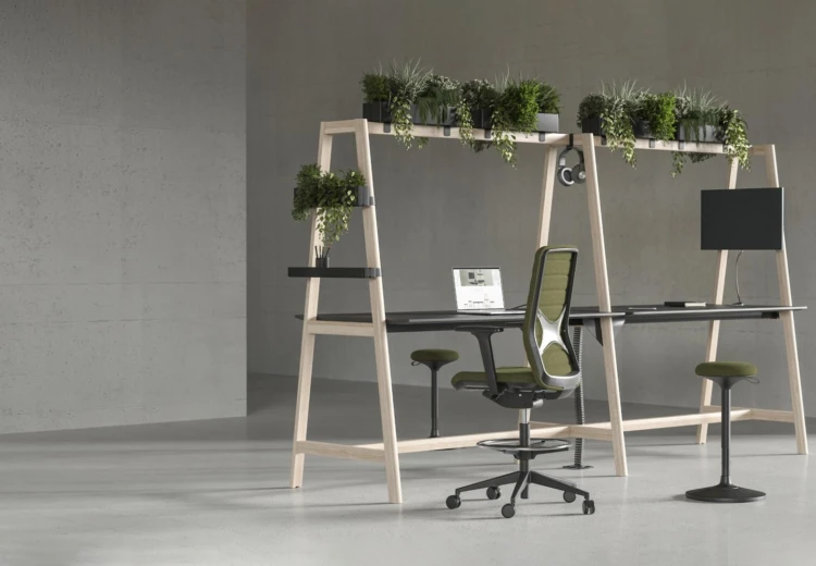Met behulp van accessoires kunt u een functionele en uniek vormgegeven ruimte creëren. Aan de tafelpoten kunt u gemakkelijk een beeldscherm of een schrijfbord bevestigen. Ondertussen zullen de schappen een perfecte plaats zijn voor waterflessen of kleine kantoorbenodigdheden. De kantoorplanten bovenop de rekken zorgen voor een huiselijke en persoonlijke sfeer. De in het tafelblad geïntegreerde elektrische oplossingen zorgen voor een gemakkelijke toegang tot stroom voor uw vergaderapparatuur.