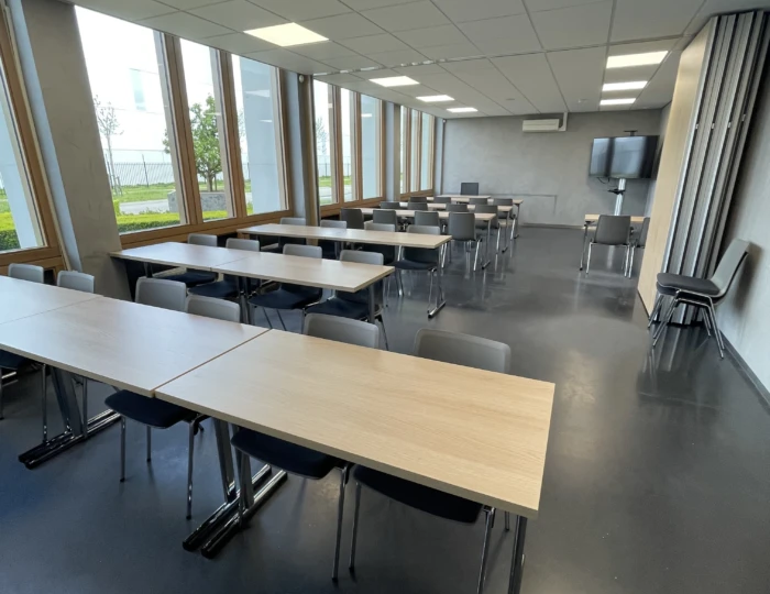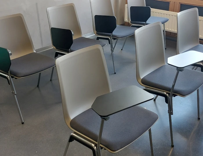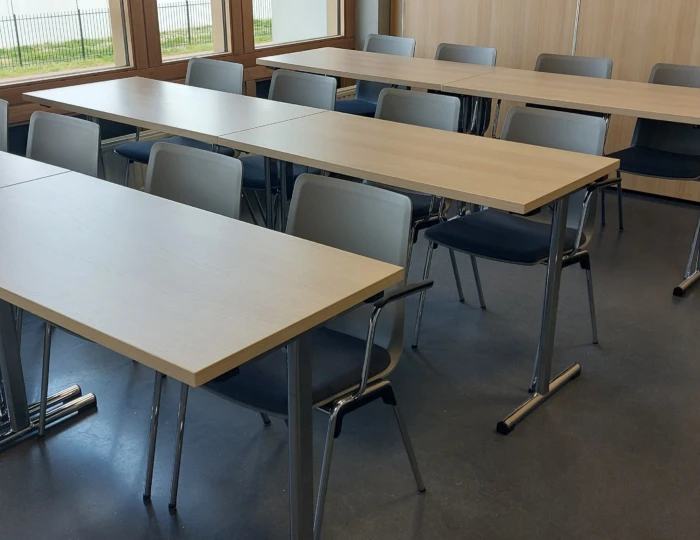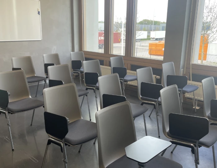 Een opleidingsruimte met Brunner Hero stapelstoelen en Brunner Basic klaptafels.