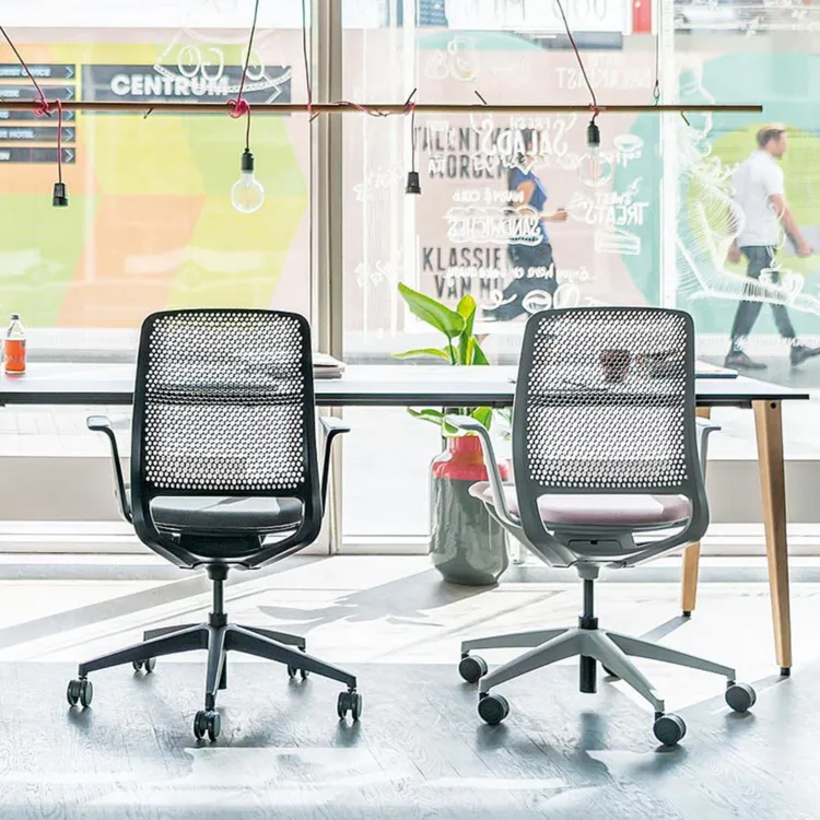 Design bureaustoel Se: Motion mag worden gezien. Deze subtiele stoel springt door haar sierlijke lijnen eigenlijk niet op in de huiskamer of werkkamer. Winnaar van diverse awards, waaronder IF design award. De smalle transparante rug en zitting zorgen ervoor dat deze stoel ook in de woonkamer goed tot z’n recht komt.