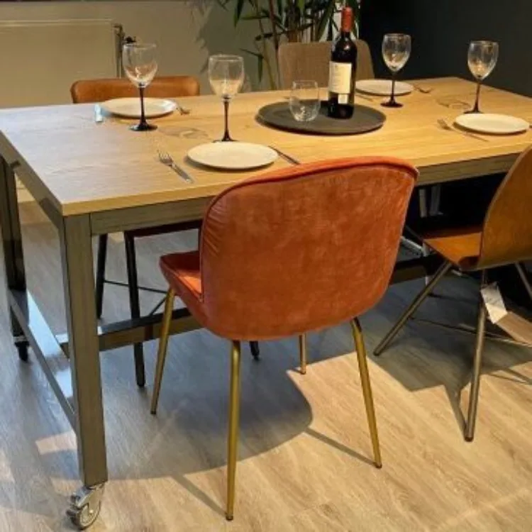 Versluis verrijdbare tafel met rustiek eiken blad. Afmeting 160 x 80 cm. De tafel heeft rubberen wielen met rem en staat op een gelast H-frame. Kijk bijvoorbeeld naar de Valk tafels die wij hebben geplaatst bij DLL.