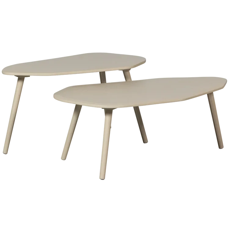 De Davina bijzettafelset combineert verfijnd design met praktische toepasbaarheid. Deze set van twee bijzettafels kenmerkt zich door een organische vormgeving en een elegante houtnerfstructuur. Dankzij het gebruik van afgelakt MDF met fineerafwerking ogen de tafels rustig en passen ze moeiteloos binnen diverse interieurstijlen – van ontvangstruimtes tot directiekantoren.